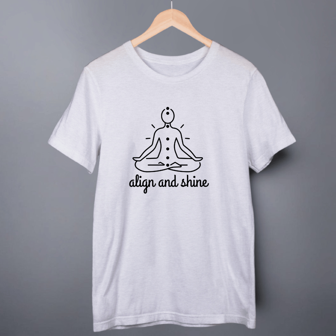 Embrace your inner calm with the Align and Shine Yoga T-shirt. Designed for both comfort and style, this shirt features a breathable fabric..Let your practice reflect your inner peace and shine bright with every movement.