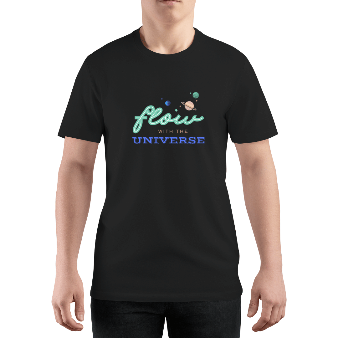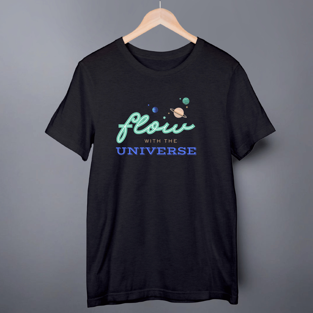 Embrace tranquility with the ‘Flow With The Universe’ T-shirt, featuring a mesmerizing design of planets and cosmic patterns. Perfect for meditation and yoga lovers, this shirt encourages harmony and connection with the universe in every session.