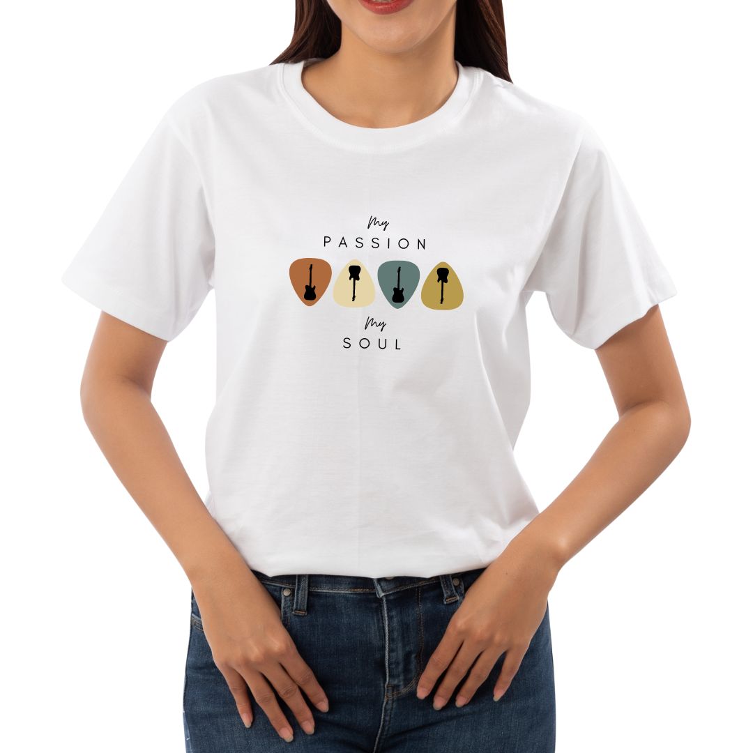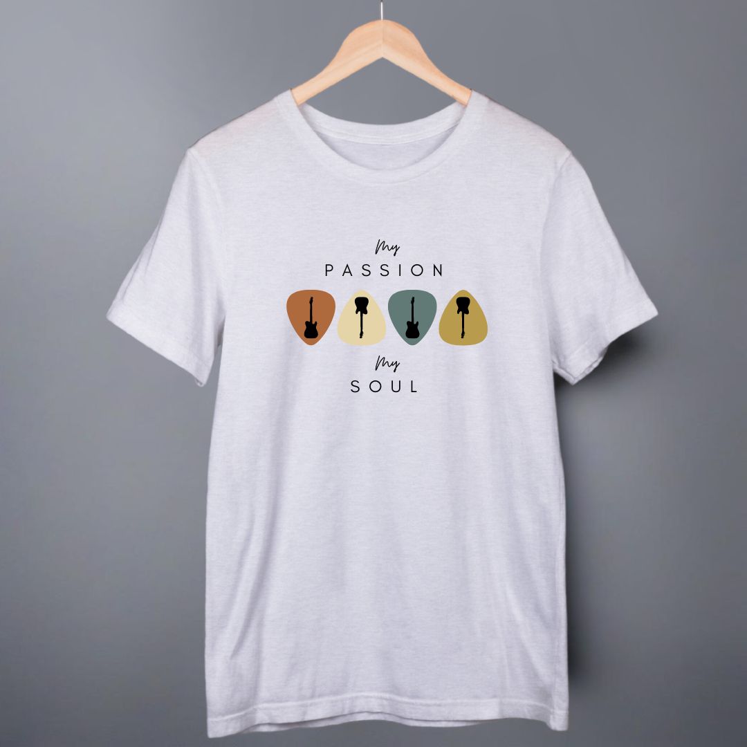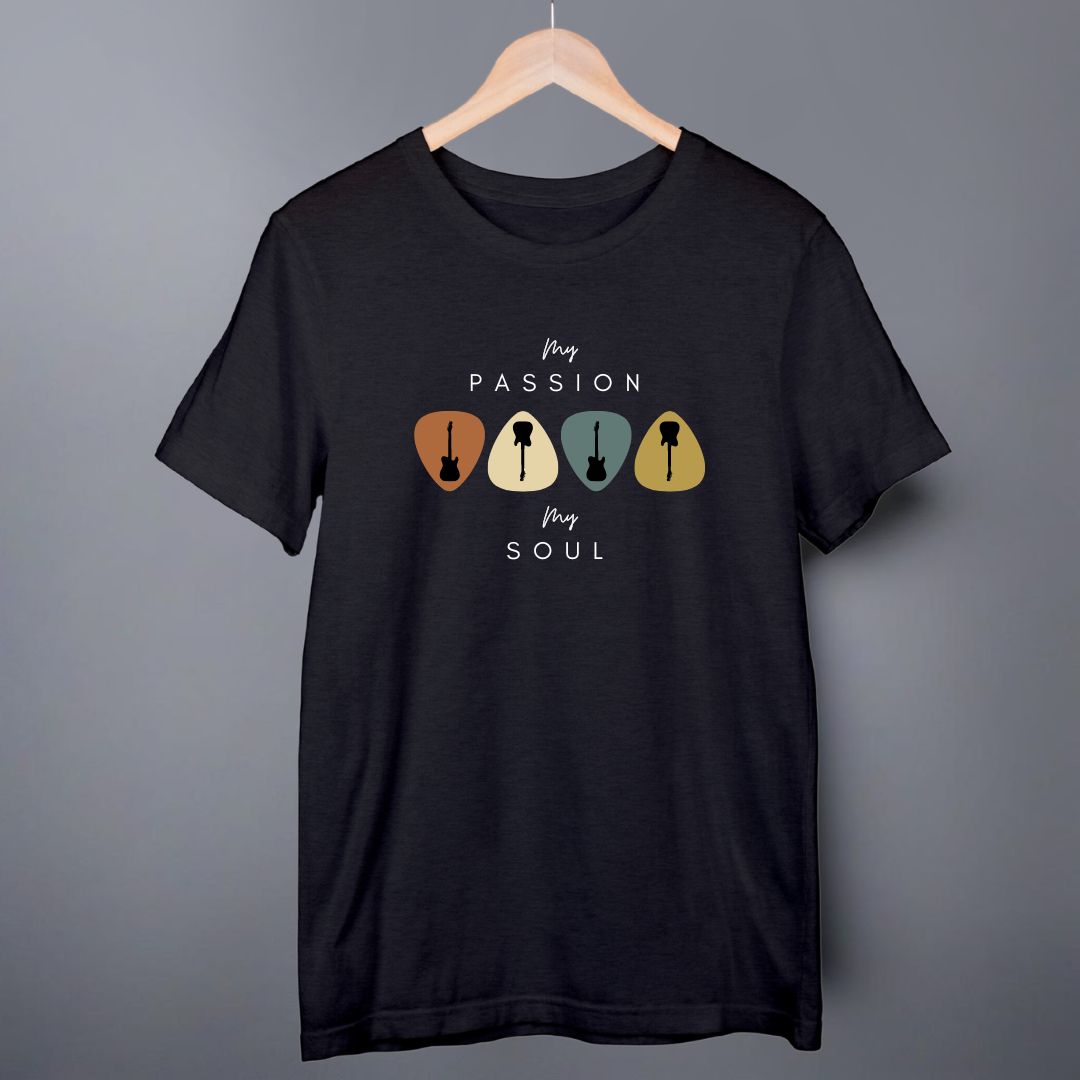 Celebrate your musical journey with our 'My Passion, My Soul' T-shirt. Designed for guitarists who pour their heart into every chord, this tee embodies the soulful connection between you and your music. Wear it with pride and let your talent shine!