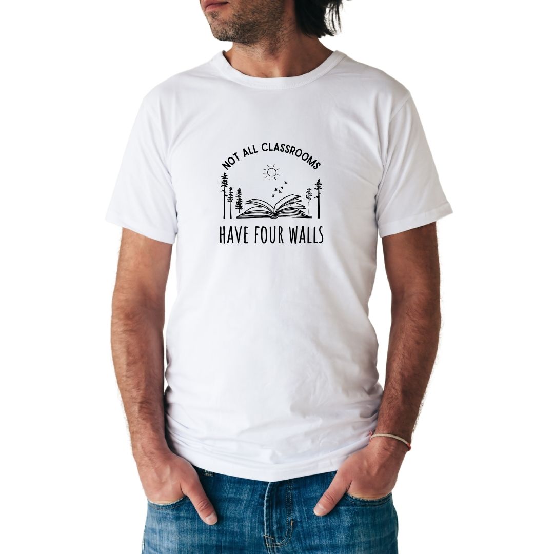 Break free from conventional learning with our 'Not All Classrooms Have Four Walls' unisex T-shirt. Designed for the adventurous spirit and lifelong learner in you, this tee celebrates the wisdom gained beyond traditional confines. Whether you're exploring nature's wonders or experiencing cultural immersion, this shirt is a symbol of limitless discovery. Embrace the world as your classroom with this versatile and comfortable tee, perfect for any journey.