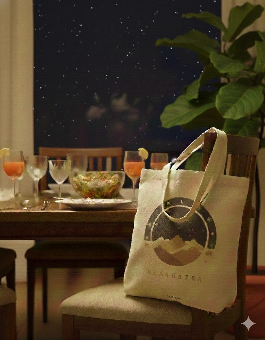 Carry the calm of the cosmos with the Nakshatra Tote Bag. Inspired by the starry night sky above the mountains, this bag connects you to the universe’s quiet rhythm. Crafted in premium cotton, it’s perfect for dreamers, stargazers, and anyone who believes in celestial balance. 🌙