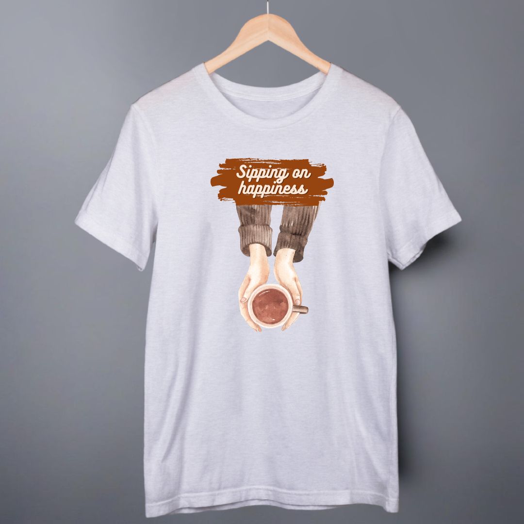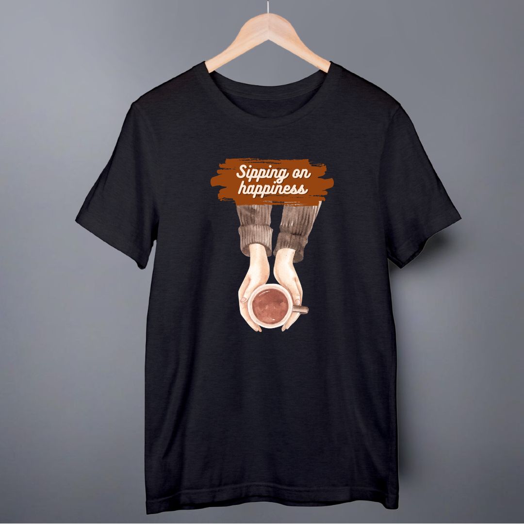 Find joy in every sip with our 'Sipping on Happiness' T-shirt, celebrating the simple pleasures and uplifting moments that a cup of coffee brings. Let each sip be a reminder to savor the little things in life.
