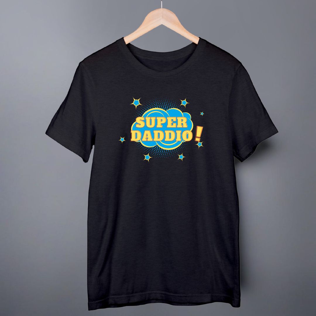 Level up your dad game with our 'Super Daddio!' T-shirt. Perfect for the super dads who tackle every challenge with strength, love, and a sense of adventure. Wear it proudly and let everyone know you're the ultimate hero in your family's story!